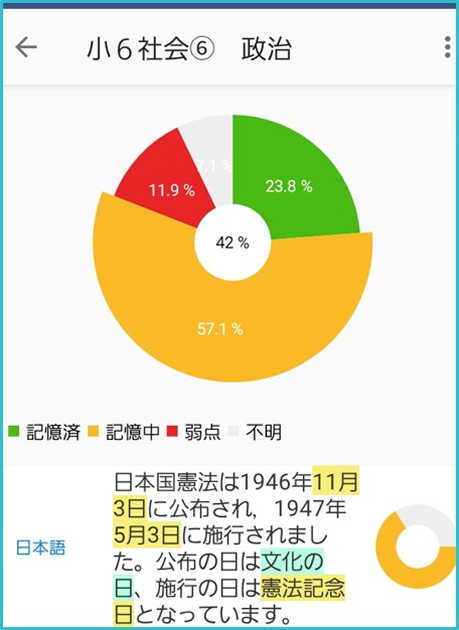 AIが一人ひとりに最適な問題を出題。即座に記憶度と学習状況の可視化。コミュニケーション機能で保護者共有もスムーズに。